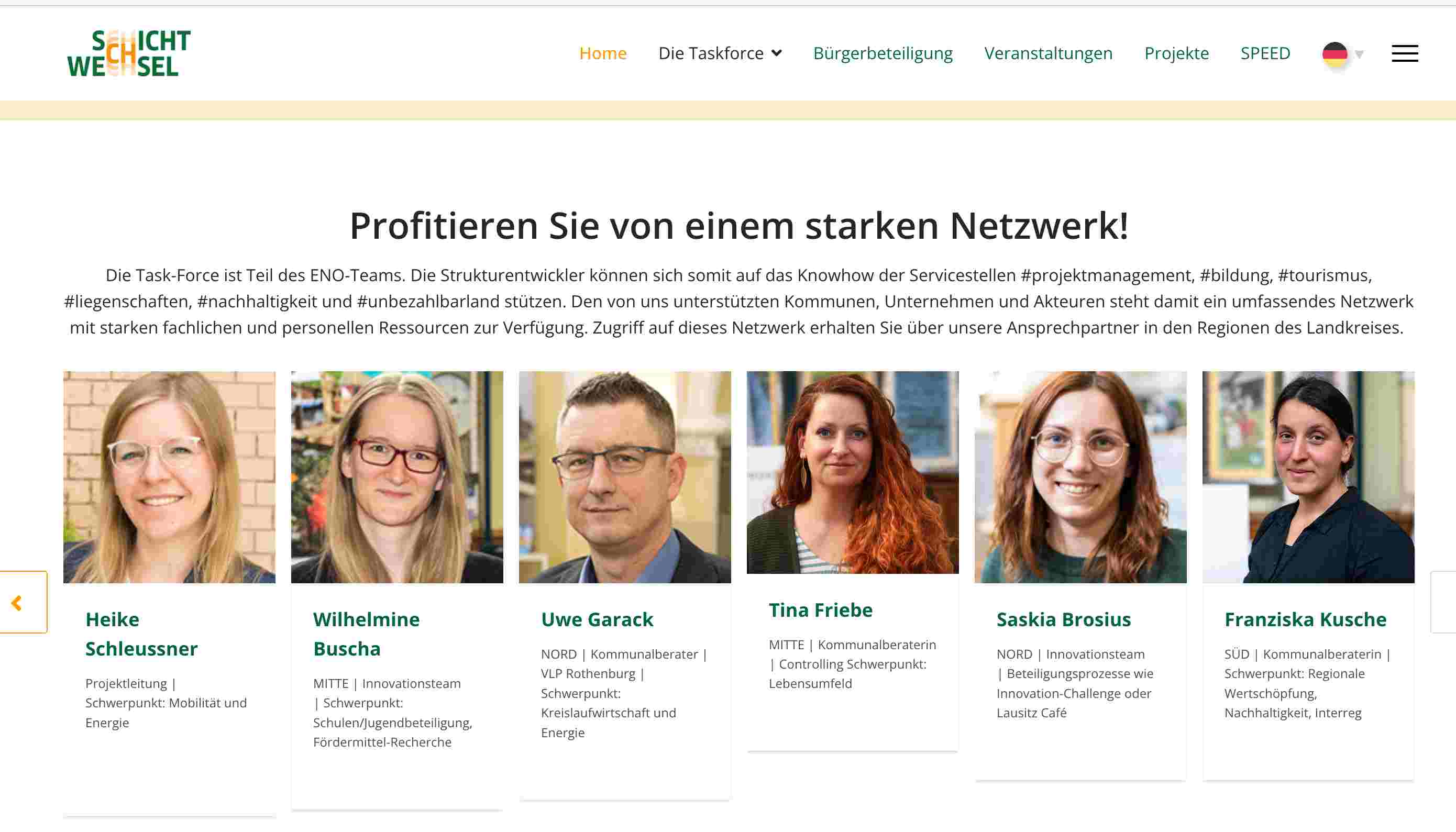 Damit wir so greifbar wie möglich sind für alle, die im Landkreis Görlitz zu Hause sind und ihre Ideen in den Strukturwandelprozess einbringen wollen, stellt sich jedes Teammitglied mit seinem Aufgaben- und Kompetenzbereich vor. Wer tiefer in die Arbeit von uns Strukturentwicklern in der ENO tauchen will, dem möchten wir an dieser Stelle das Studium unserer Jahresberichte ans Herz legen. Doch natürlich wollen wir noch mehr als das, was wir in unseren Jahresberichten nicht ohne Stolz berichten können: wir wollen mit den Einwohnerinnen und Einwohnern des Landkreises Görlitz vorankommen, die Zukunft und unser Lebensumfeld gemeinsam gestalten. Wer, gern als Einzelperson, aber auch als Verein, Unternehmen oder Kommune eine Idee hat, wie das gehen kann, kann sich hier einklicken und uns schreiben - wir freuen uns über Eure aktive Beteiligung und melden uns umgehend zurück!